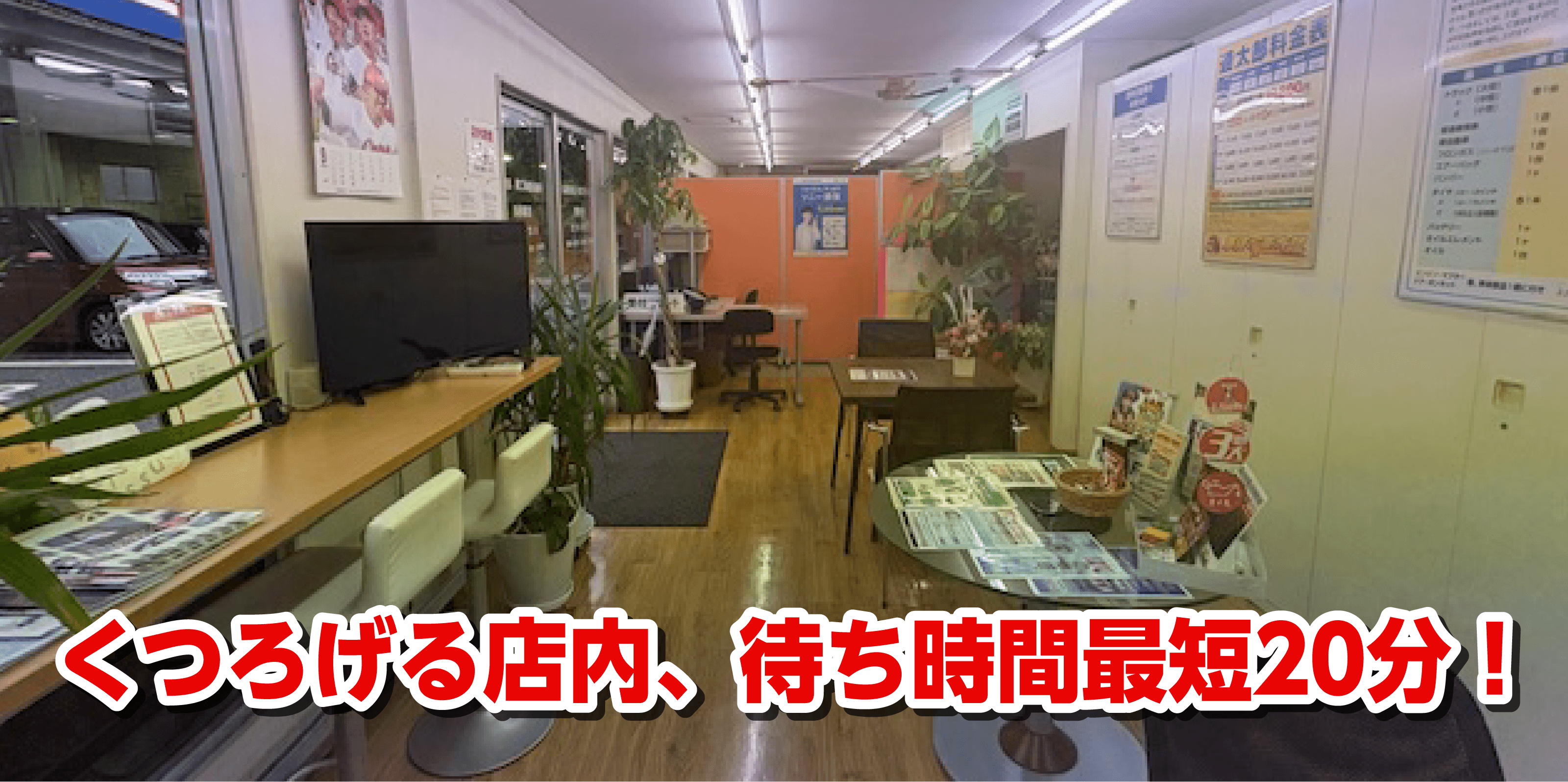 ご予約いただければあまりお待たせせずに作業にとりかかりますので、およそ20分程の待ち時間となります。お客様の混雑状況によっては多少前後することがございます。
